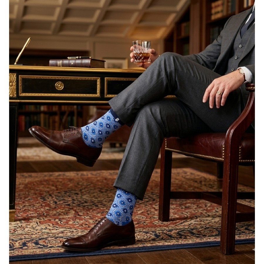 These blue flower socks are a perfect choice for both men and women, for everyone who appreciates fashion and cares about the details of their wardrobe. They add personal style and character to any styling, while maintaining elegance and comfort of wearing.